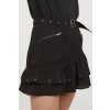 Krátká černá sukně z mačkané, tkané viskózové směsi s klasickým pasem, skrytým bočním zipem, falešnými předními kapsami a slušivými volánky.